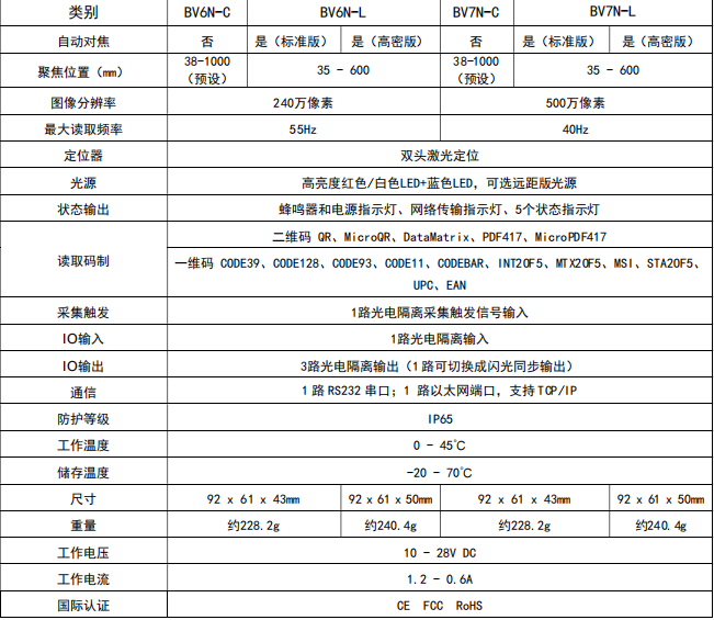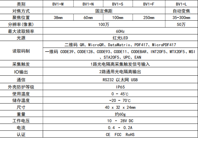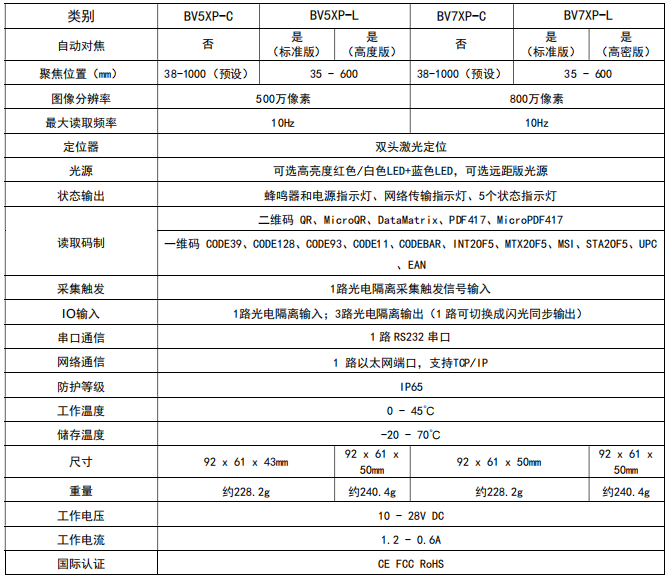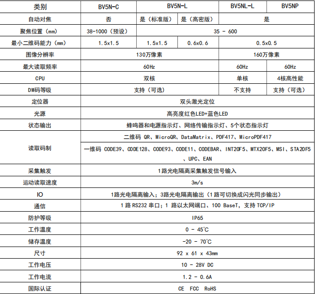 BARV 系列固定式讀碼器 — BV5N、BV5NL、BV5NP
