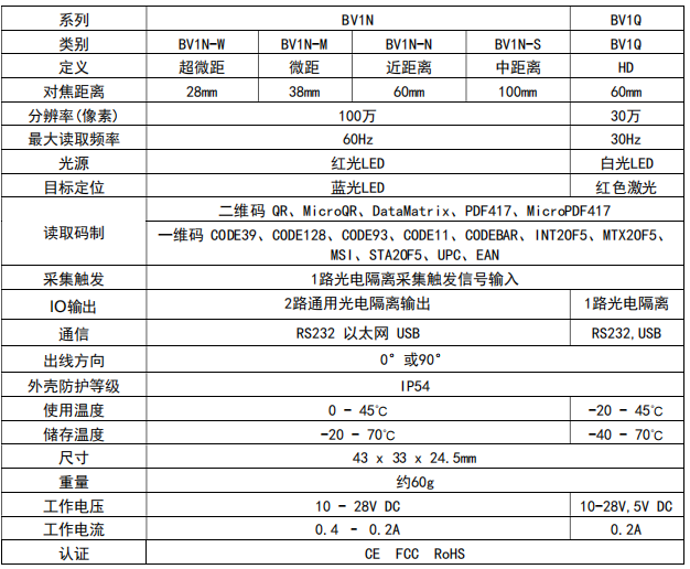 BARV 系列固定式讀碼器 — BV1N、BV1Q