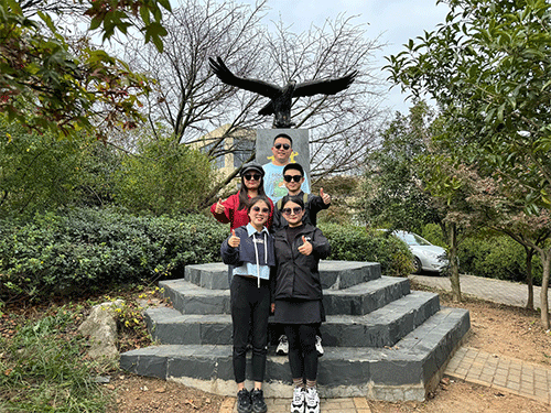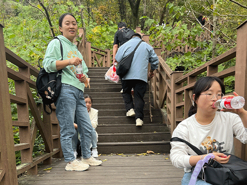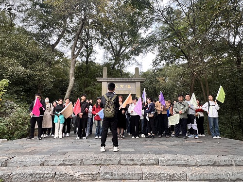 經過一番艱苦的徒步之旅,我們終于到達了老鷹崖山頂,無論山有多高,也只在攀登者的腳下;無論路有多遠,也總會有抵達的那天。歷經近3個小時的路程,大家終于到達山頂,“會當凌絕頂 ,一覽眾山小”壯麗秀美的大好河山就在腳下。站在老山之巔,大家登高憶遠,思及過去艱辛,更能感受當下風景的珍貴!最后,大家在山頂合影留念。