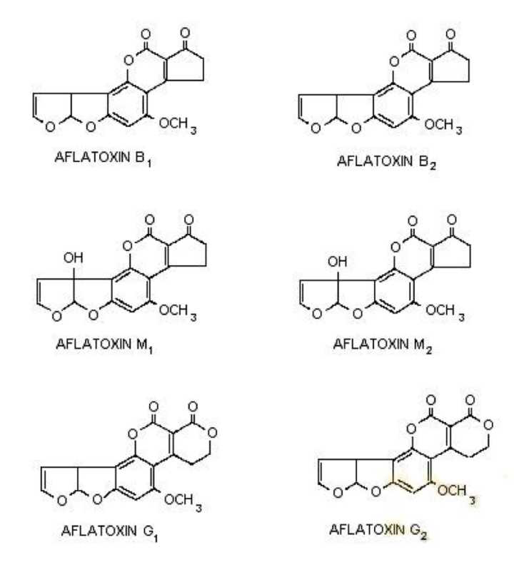 我還有個(gè)大哥,叫黃曲霉菌(Aspergillus.flavus),他比我還要牛。如果你把花生、玉米、甘薯當(dāng)做零食或水果來吃的話,他可是虎視眈眈在等你。霉變的花生玉米中有他產(chǎn)生的黃曲霉毒素(Aflatoxins),毒性是氯化鉀的10倍,是砒霜的68倍,還是目前所知致癌性最強(qiáng)的化學(xué)物質(zhì)。