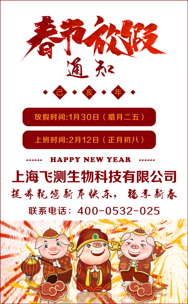 新春佳節將至,在此感謝大家在過去一年里對上海飛測生物科技有限公司的大力支持與信任。新的一年希望大家繼續關注和支持上海飛測生物,同時上海飛測也會一如既往地為大家提供更優質的產品和服務!