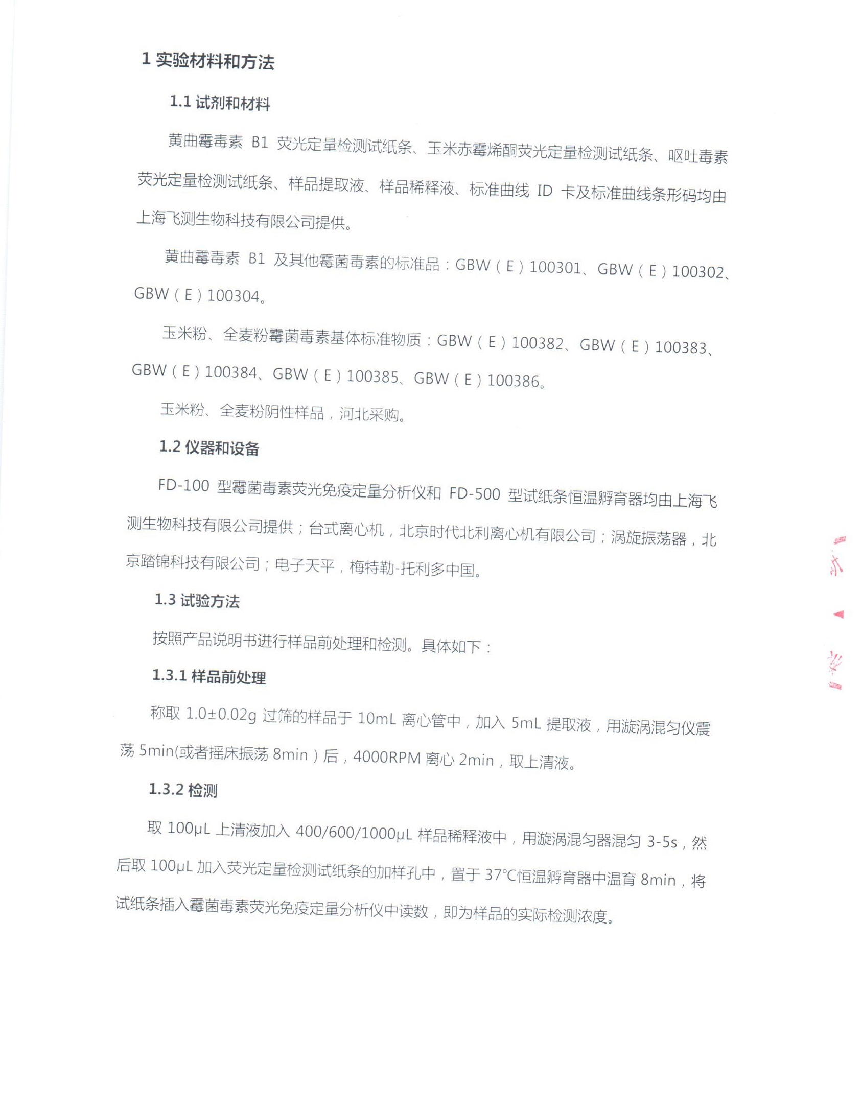 采用上海飛測生物科技有限公司提供的霉菌毒素熒光定量快速檢測系統檢測糧食樣品中的三種霉菌毒素,對產品的準確性、重復性和正確度進行了測試評估。結果表明: