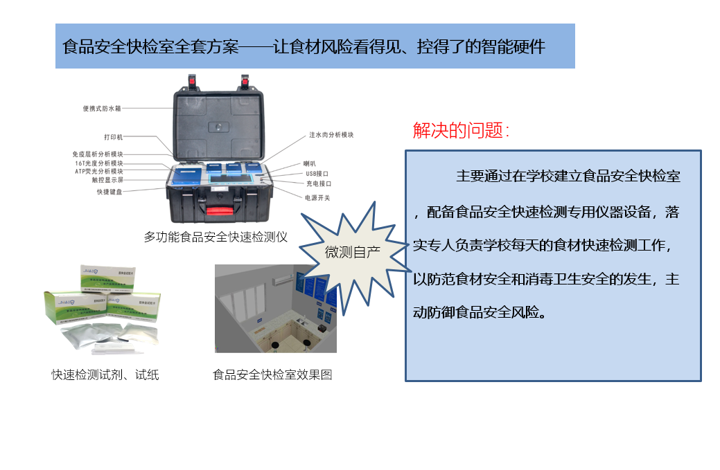 (1)、食品安全快檢室全套方案——讓食材風(fēng)險(xiǎn)看得見、控得了的智能硬件